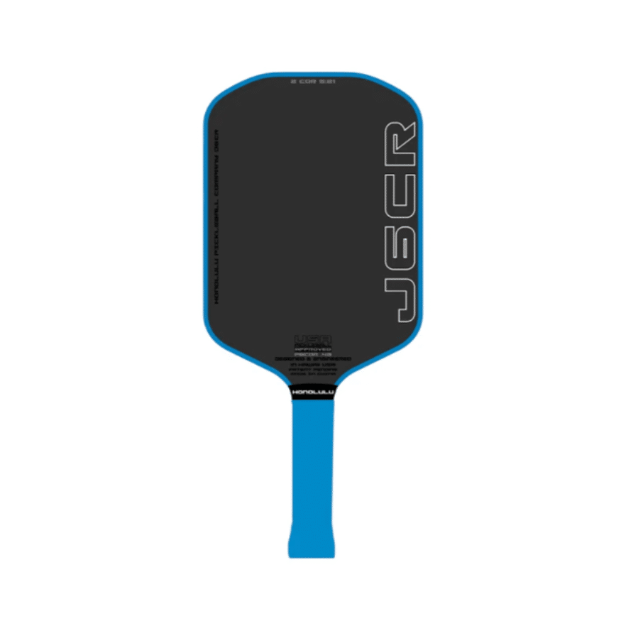 The Honolulu J6CR pickleball racket is the NEXT GENERATION POWER PADDLE – Increased power, enhanced pop, while maintaining smooth, predictable and controlled play.