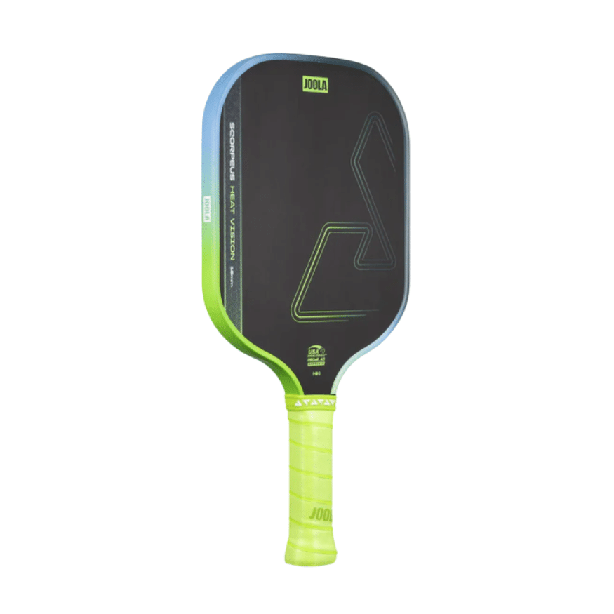 The Joola Scorpeus Heat Vision 16 mm is an exceptional pickleball paddle, designed for players seeking the perfect balance between power, control, and comfort. Built using a full thermoforming process, it delivers outstanding stability and long-lasting durability. This innovative technology extends from the handle through the paddle’s neck, creating a structure that is both rigid and flexible — ideal for absorbing impact while returning maximum power with every shot.