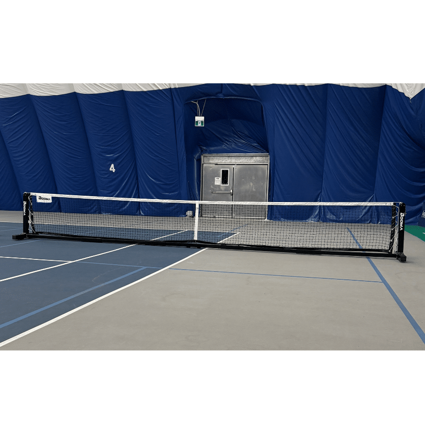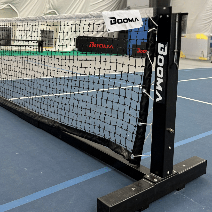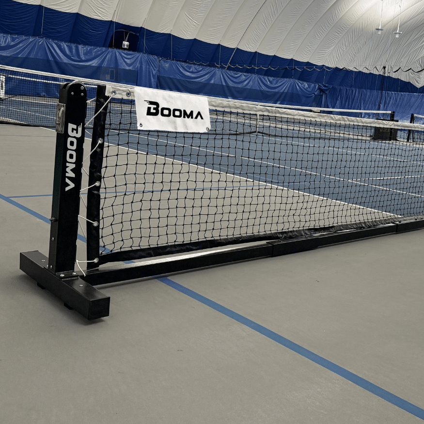 Le filet de pickleball sur roulette BOOMA Elite offre une option robuste, résistante aux intempéries et à la corrosion pour les passionnés de pickleball. Entièrement conforme aux normes officielles de USA Pickleball, il combine la stabilité d’une installation permanente scellée dans le sol avec une portabilité facile. Profitez d’une performance durable grâce à sa construction solide en acier avec revêtement en poudre.