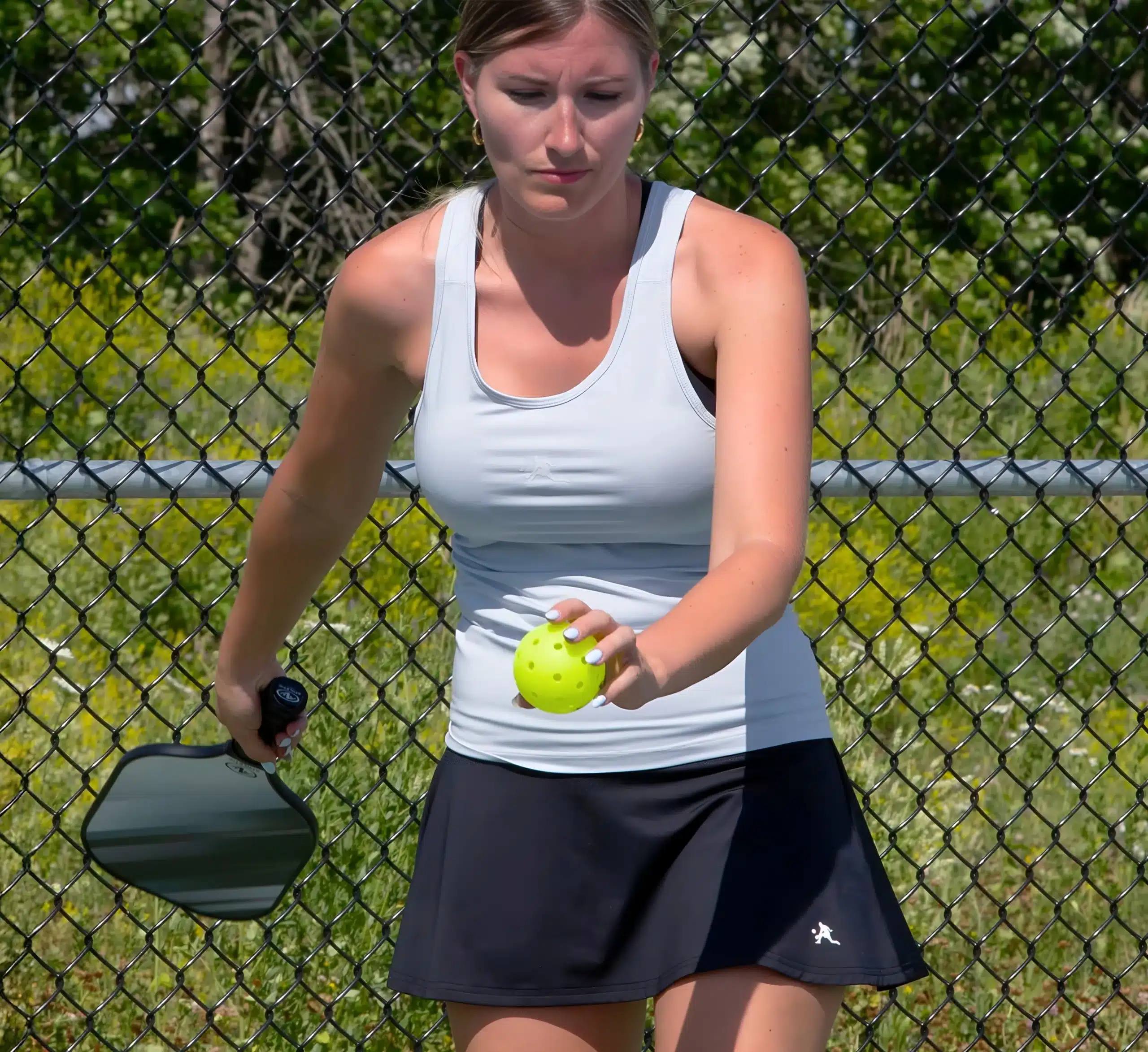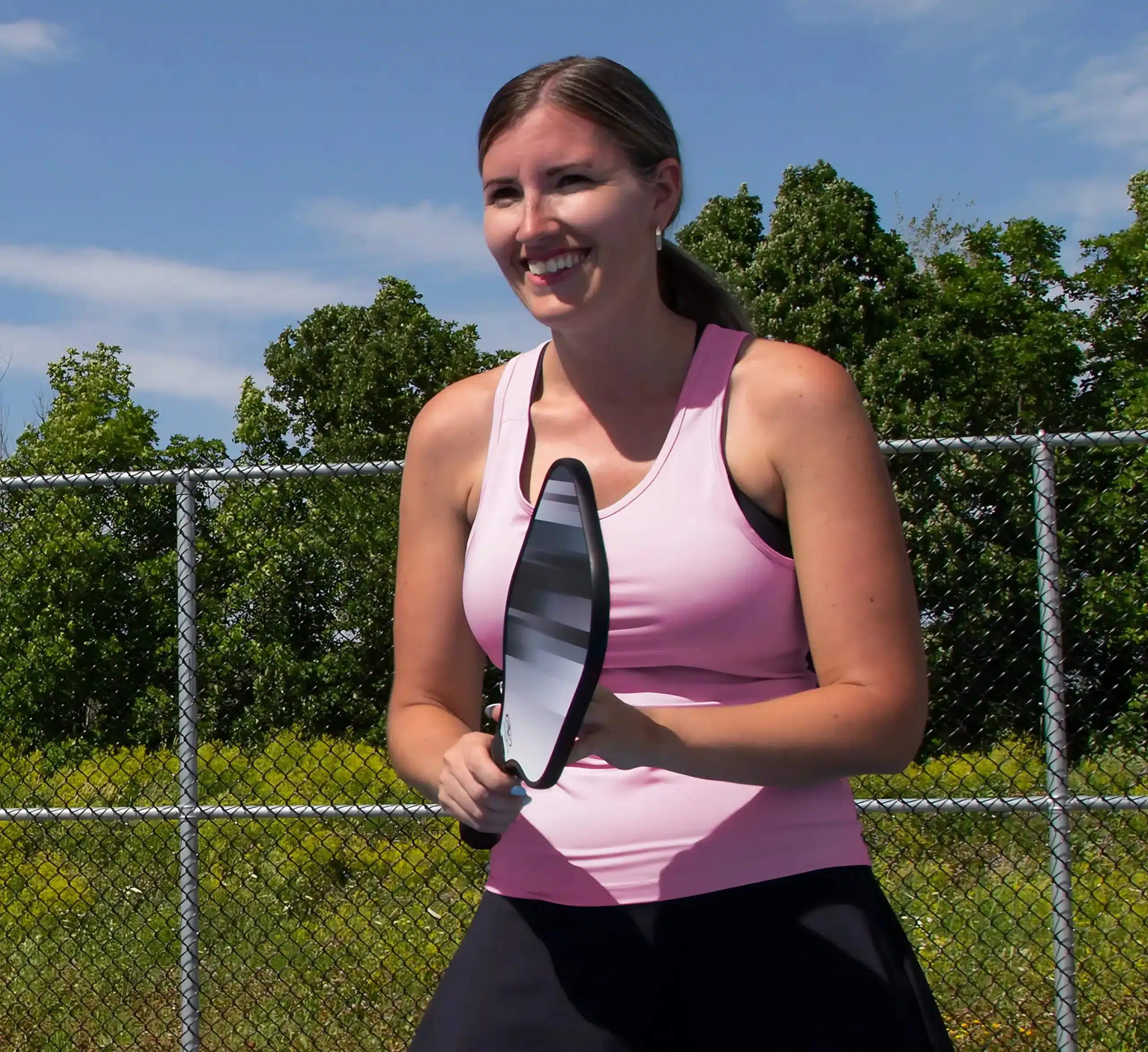 Grâce à sa coupe ajustée, elle épouse naturellement le haut du corps sans le comprimer. Cependant, si vous préférez une coupe plus ample, il est conseillé de choisir une taille au-dessus. Le design sportif et féminin est complété par le logo PBall Outfit, discrètement apposé. Ainsi, vous affichez un look dynamique qui reflète votre passion pour le pickleball.