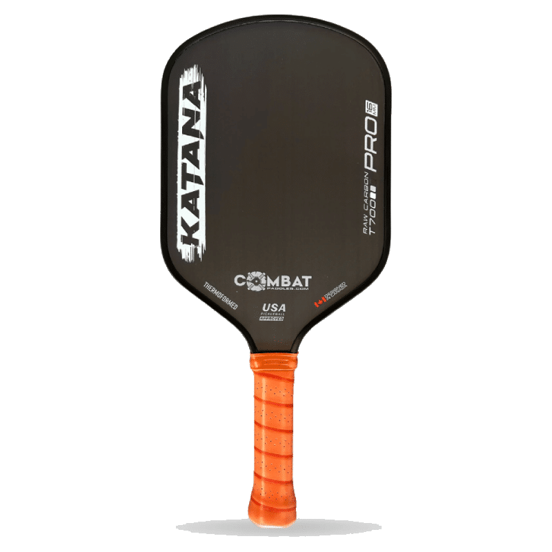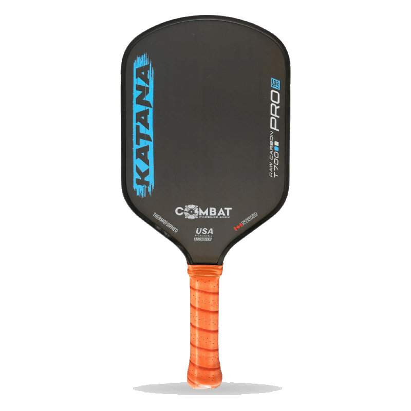 La raquette de pickleball Combat Katana possèdeune forme unique et un poids de 8,0 onces permettant aux joueurs d’obtenir plus de contrôle et d’effets que jamais. Le sweet-spot bord à bord est ancré par un noyau en nid d’abeille en polypropylène avec des cellules entières. Avec un noyau plus épais et un manche plus long, cette raquette a un excellent toucher et contrôle et est idéale pour ceux qui veulent un revers à deux mains ou un peu plus de portée.