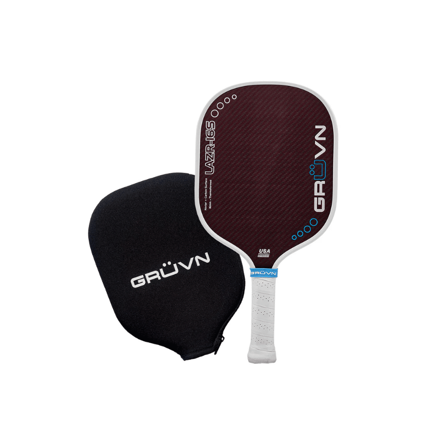 Cette raquette de pickleball vient avec une housse en néoprène à fermeture éclair avec le logo GRÜVN pour protéger la raquette de pickleball lorsqu’elle n’est pas en jeu.