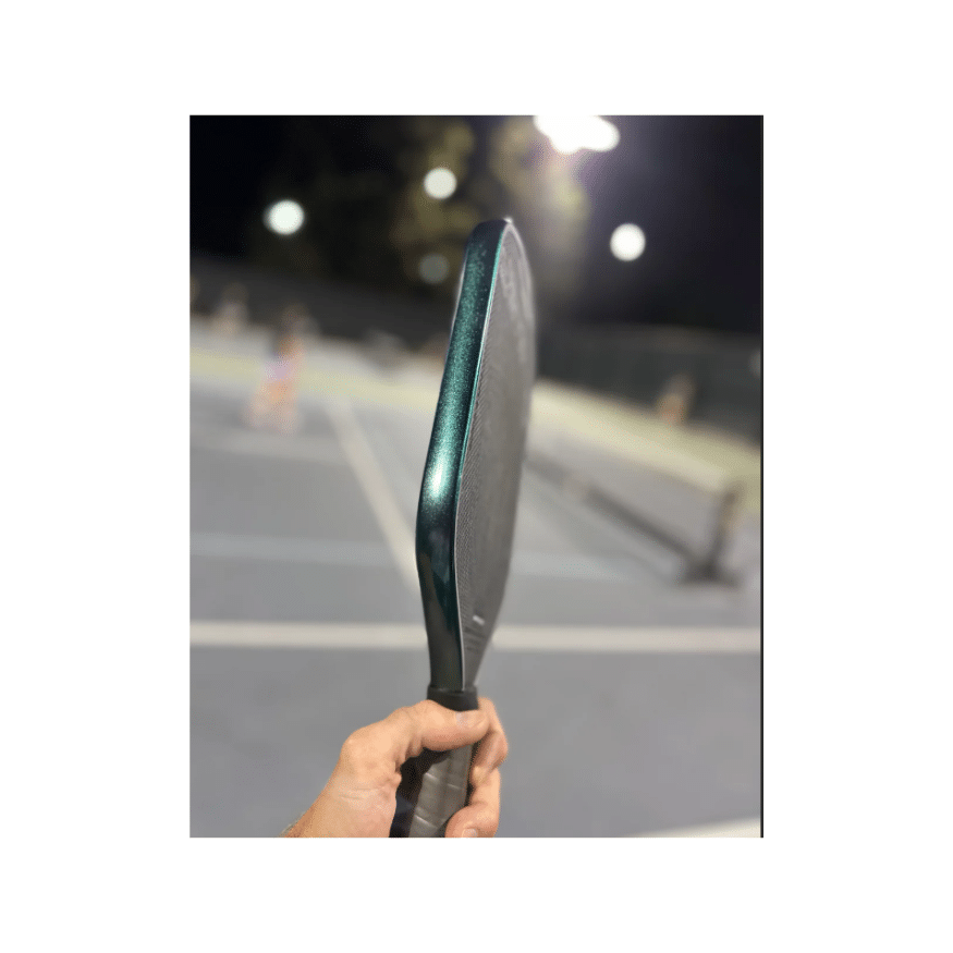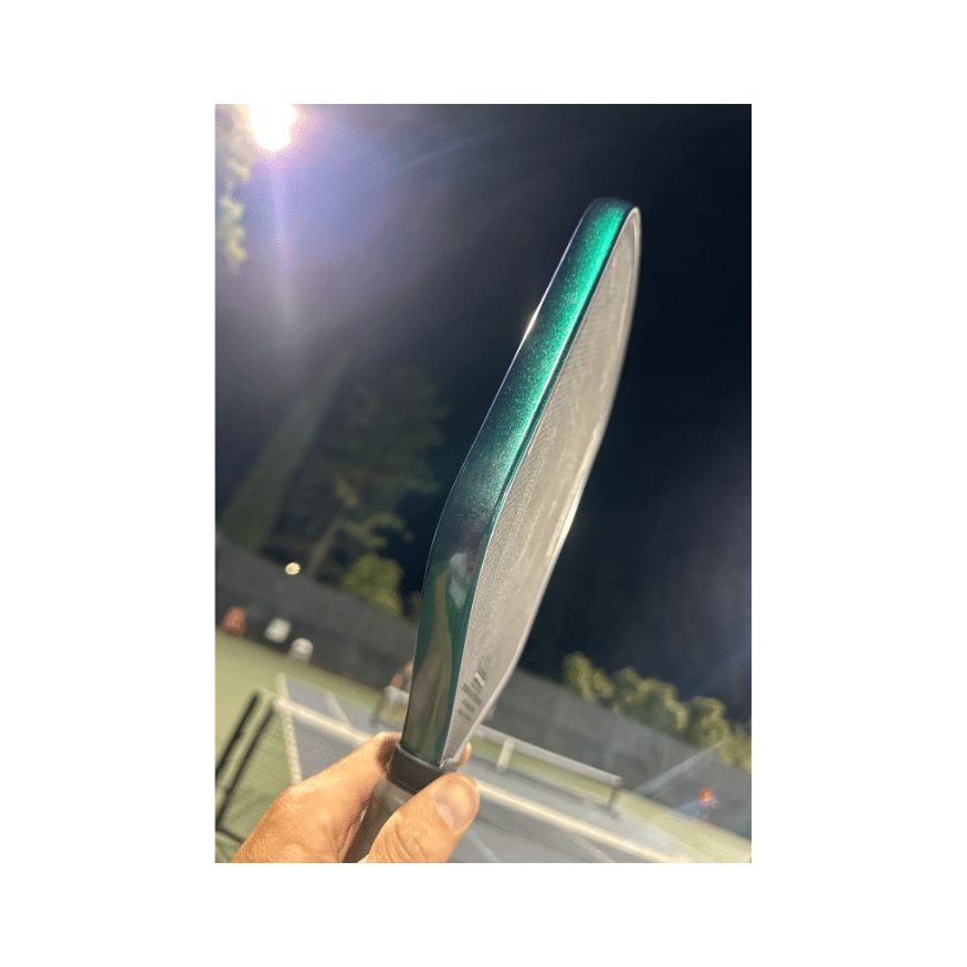 Le Vinyl Styles Edge Guard Éclat Emeraude est conçu pour protéger votre raquette de pickleball tout en offrant un effet visuel spectaculaire. Son design métallique dynamique change de couleur selon la lumière. Il passe d’un argent vif à un vert émeraude éclatant, créant un effet unique sur le terrain.